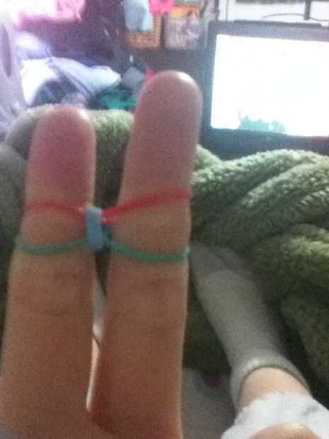 Paso 1: Paso 1Se necesitabandas de gomalos dedosPaso 2: Paso 2 Haz tu primer color y el lugar en su dedo y señalando luego gíreloPaso 3: Paso 3 Coloque su color 2 º en la parte superior el primer color (no gire el resto). Colóquese el primer color ot