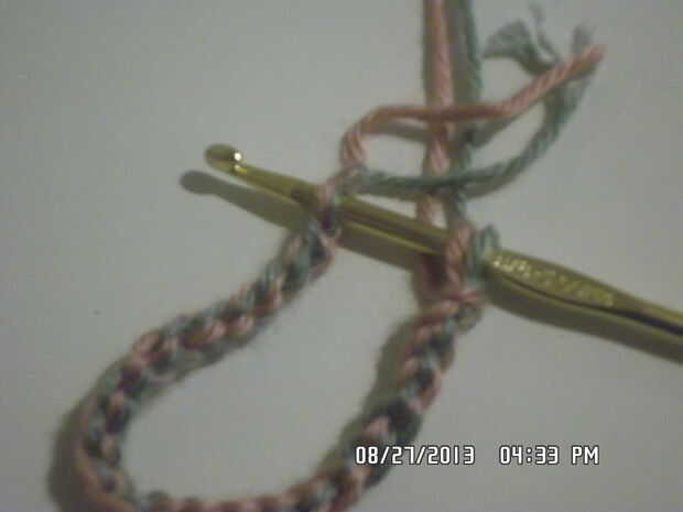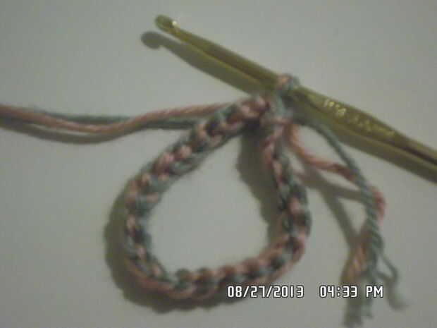 Se conecte lo dos extremos juntos bye poner el gancho en la primera cadena y hacer un nudo del resbalón.