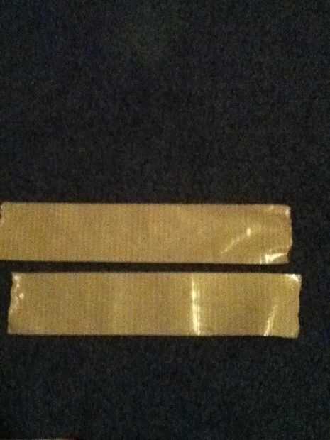 2 cortar del mismo tamaño las tiras de cinta de conducto que se forma alrededor de su brazo y les pegan