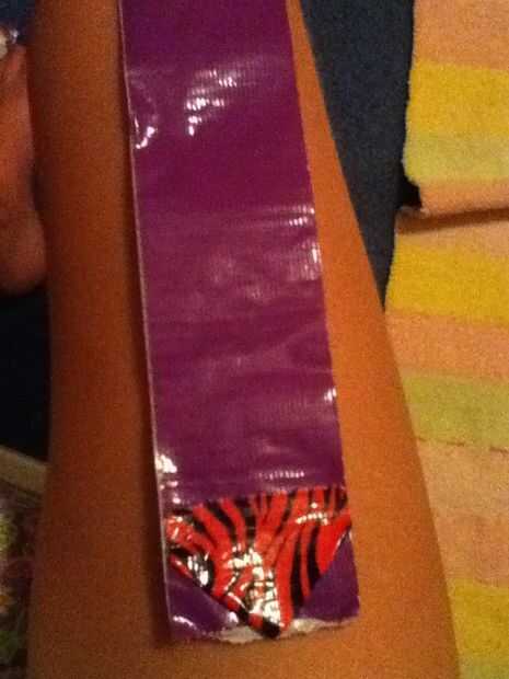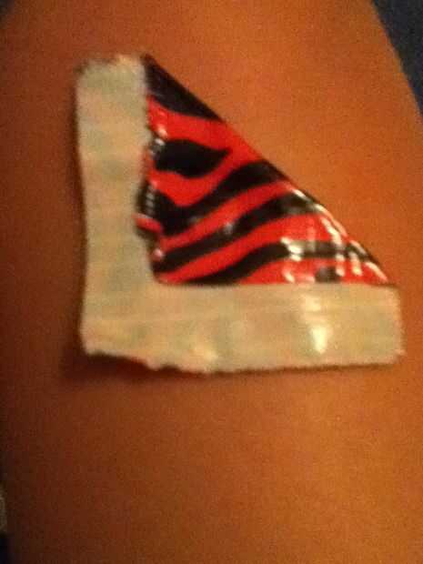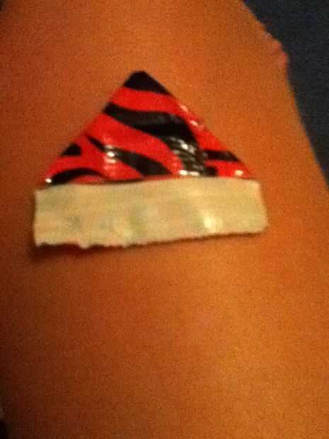 Luego tomar un cuadrado de cinta adhesiva y doblar por la mitad dejando un poco de espacio pegajoso a la izquierda y luego plegar uno de los lados hasta su pegarse y luego por lo que es un triángulo no un par de esos hasta que ajusta el brazo