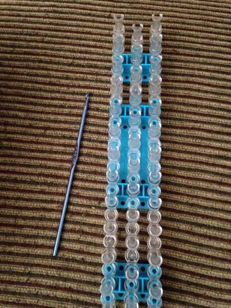 Paso 1: Conseguir las bandas Se necesita:Cualquier telarUn gancho de70 bandasUn clip de c o sPaso 2: Colocar las bandas Colocar una banda de la clavija de la parte inferior en la clavija superior siguiente.Paso 3: Colocar una banda de la primera clav
