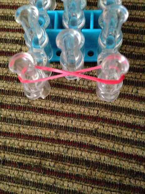 los materiales que necesitas son el telar del arco iris, un clip c o s, algunas pequeñas bandas de goma y un ganchoPaso 1: Inicio el primer paso es hacer un ocho y colóquelo en su telarPaso 2: segunda banda ahora Coloque su segunda banda en la parte