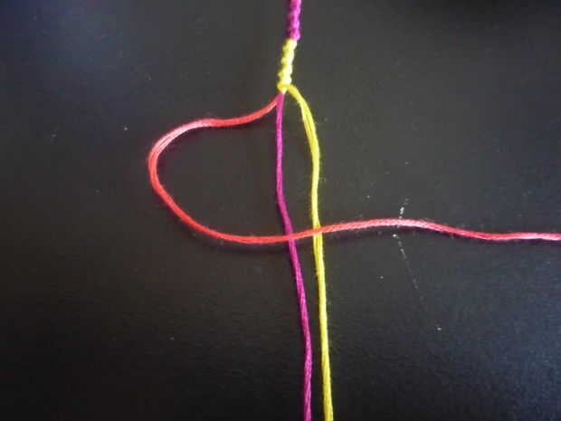 3. cruzar el hilo de bordado rosa los otros dos colores. (véase cuadro II)