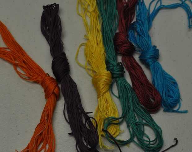 Recoger los 6 colores que atraen a usted. Generalmente la gente mezclar y combinar colores cálidos y fríos. Púrpura es un color cálido y frío. Usted puede encontrar hilo de bordado en cualquier tienda de arte y artesanía. Me gusta usar hilos de algodón DMC ya que se mantiene y es muy durable. Lo encontrarás en Michaels (donde tenemos nuestra). Me gusta a Michaels porque tienen tantas gran cupones. En general, con 6 colores, usted puede hacer 10 pulseras. Esto es una gran fiesta de pijamas o un proyecto de BBFs.