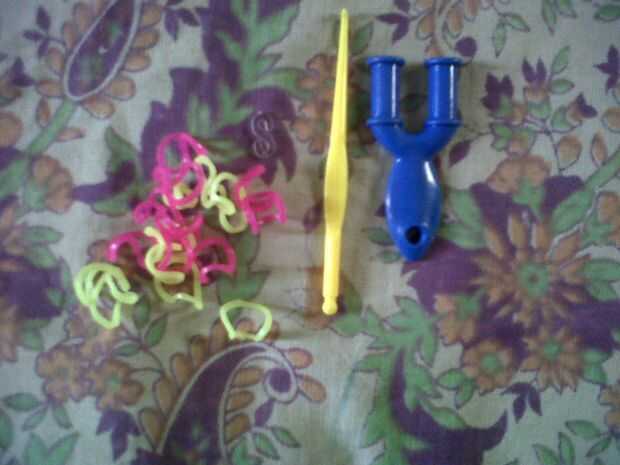 Paso 1: Obtener su material Para hacer una pulsera de telar, se necesita un telar, una herramienta de selección, una "S" o un clip de "C" y su elección de gomas de colores.Paso 2: Iniciar aplicando bandas de goma Coloque uno de su esti