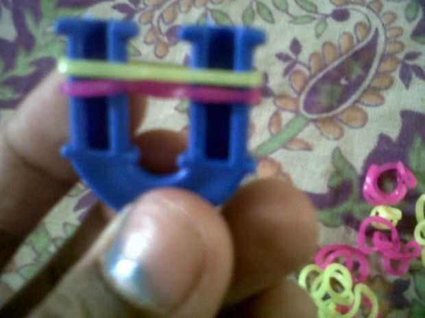 Paso 1: Obtener su material Para hacer una pulsera de telar, se necesita un telar, una herramienta de selección, una "S" o un clip de "C" y su elección de gomas de colores.Paso 2: Iniciar aplicando bandas de goma Coloque uno de su esti