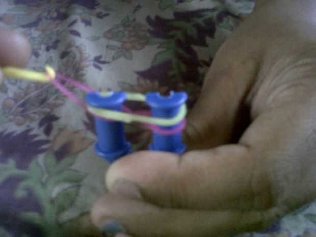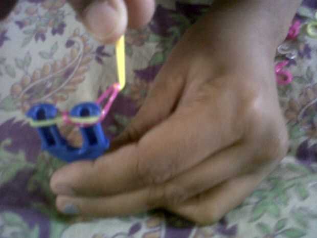 Paso 1: Obtener su material Para hacer una pulsera de telar, se necesita un telar, una herramienta de selección, una "S" o un clip de "C" y su elección de gomas de colores.Paso 2: Iniciar aplicando bandas de goma Coloque uno de su esti