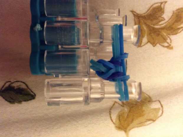 Esta es la pulsera como se verá cuando esté terminado. Yo recomiendo usar 3 colores diferentes para esta pulsera. Antes de poner las bandas en el paso siguiente Asegúrese de que doble todas las bandas, si crees que me refiero a hacer una banda de la