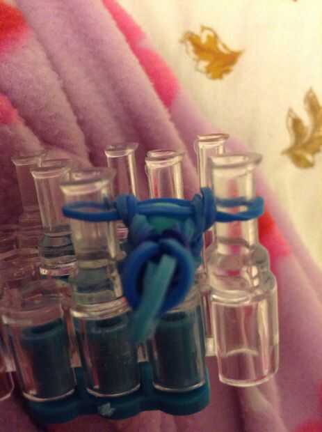 Esta es la pulsera como se verá cuando esté terminado. Yo recomiendo usar 3 colores diferentes para esta pulsera. Antes de poner las bandas en el paso siguiente Asegúrese de que doble todas las bandas, si crees que me refiero a hacer una banda de la