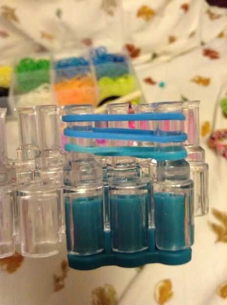 Esta es la pulsera como se verá cuando esté terminado. Yo recomiendo usar 3 colores diferentes para esta pulsera. Antes de poner las bandas en el paso siguiente Asegúrese de que doble todas las bandas, si crees que me refiero a hacer una banda de la