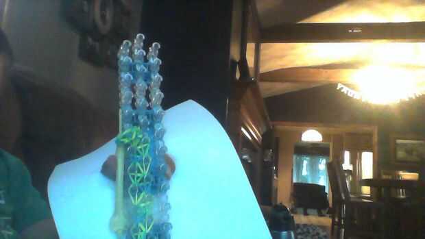 Vas a poner su gancho en la última la peg peg con la flecha en él. Asegúrese de que usted lo puso hasta el fondo. Deberá quitarlo pero asegúrese de que usted consigue todas las bandas luego sólo tomarás todo apagado. Entonces simplemente estirar tu pulsera hasta que comienza a rizarse.
