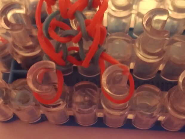 Gobierno-Gobierno es tu pulsera debe como cuando listo.Paso 1: Lo que usted necesitaUsted necesita un telar, bandas y un gancho.Paso 2: Empezando Hacer una figura de 8 con una banda y ponerlo en las 2 clavijas. Entonces puso dos bandas más en eso. po