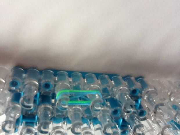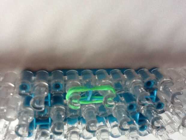 Hacer una figura de 8 con una banda y ponerlo en las 2 clavijas. Entonces puso dos bandas más en eso. por último coge la banda inferior de la izquierda y ponerlo encima de todas las bandas. Hacerlo a la derecha también. Hacerlo hasta que sea tiempo suficiente para adaptarse a la muñeca.