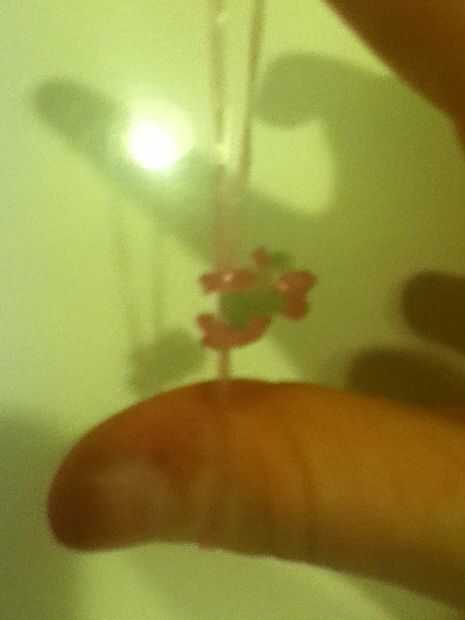 Esta es la pulsera como se verá cuando esté terminado. Yo recomiendo usar 3 colores diferentes para esta pulsera. Antes de poner las bandas en el paso siguiente Asegúrese de que doble todas las bandas, si crees que me refiero a hacer una banda de la