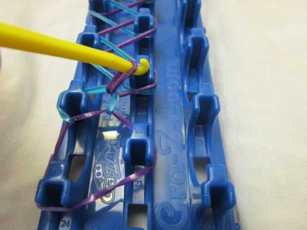 espero que te diviertas.Paso 1: Paso 1. Primera ' el telar y el zigzag de bandas.Paso 2: Paso 2. Luego ' seguir haciendo eso hasta que usted piensa que tiene la pulsera de su tamaño.Paso 3: Paso 3. Siguiente ' tomar su anzuelo y voltee el telar.Paso
