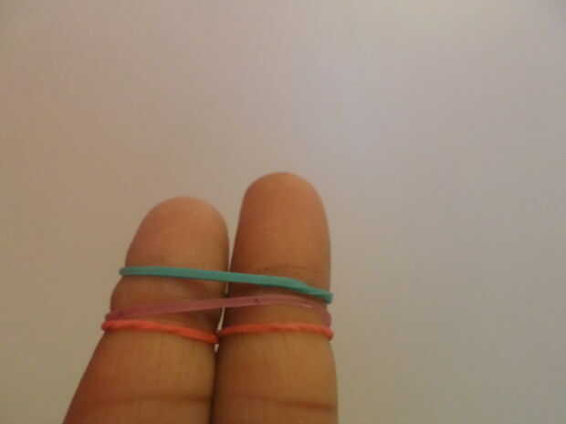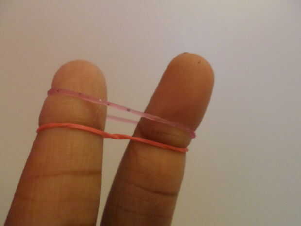 Paso 1: Materiales necesarios 1. gomas de telar del arco iris2. un brochePaso 2: Tomar una goma y cruzar sobre su dedo índice y pulgar.Paso 3: Poner otra banda con los mismo dedos pero no cruzarlo.Paso 4: Tire de la primera mitad el cruzado de la gom