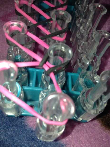 Gobierno-Gobierno es tu pulsera debe como cuando listo.Paso 1: Lo que usted necesitaUsted necesita un telar, bandas y un gancho.Paso 2: Empezando Hacer una figura de 8 con una banda y ponerlo en las 2 clavijas. Entonces puso dos bandas más en eso. po