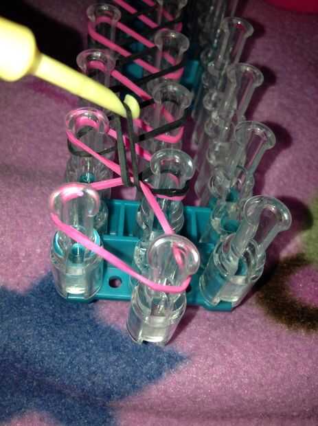 espero que te diviertas.Paso 1: Paso 1. Primera ' el telar y el zigzag de bandas.Paso 2: Paso 2. Luego ' seguir haciendo eso hasta que usted piensa que tiene la pulsera de su tamaño.Paso 3: Paso 3. Siguiente ' tomar su anzuelo y voltee el telar.Paso