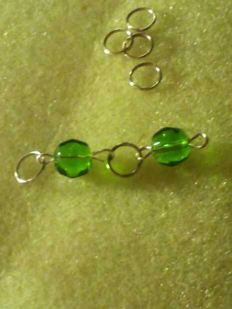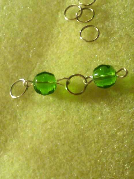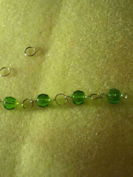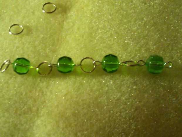 Conecte un anillo del salto a cada perno del ojo cuentas hasta que la pulsera sea lo suficientemente largos para adaptarse a la muñeca.