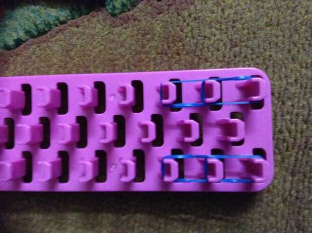 Paso 1: Obtener su material Para hacer una pulsera de telar, se necesita un telar, una herramienta de selección, una "S" o un clip de "C" y su elección de gomas de colores.Paso 2: Iniciar aplicando bandas de goma Coloque uno de su esti