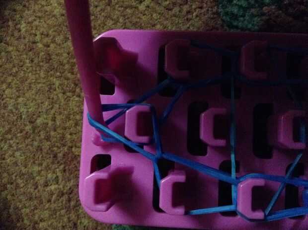 Paso 1: fuentes de Esto es lo que necesita:1 gancho2.C clip o clip de S3 bandas (por supuesto)4 y el más importante el telar!!!!!!Paso 2: Colocar las bandas Primero hacer su telar incluso añadir una banda a la izquierda a través de como si hacer una