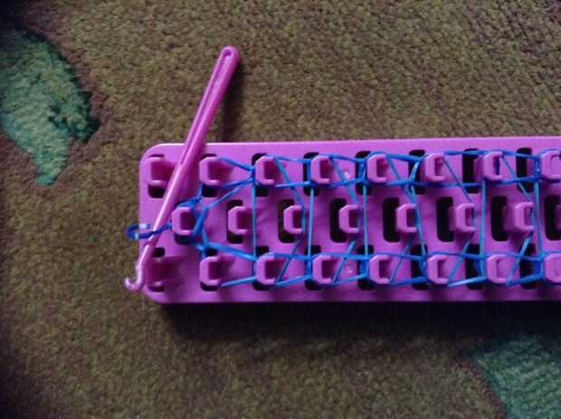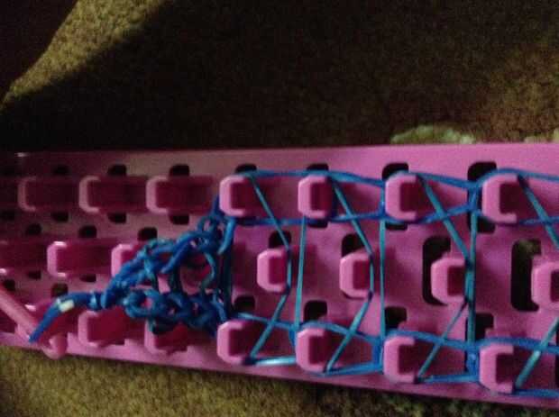 Paso 1: fuentes de Esto es lo que necesita:1 gancho2.C clip o clip de S3 bandas (por supuesto)4 y el más importante el telar!!!!!!Paso 2: Colocar las bandas Primero hacer su telar incluso añadir una banda a la izquierda a través de como si hacer una