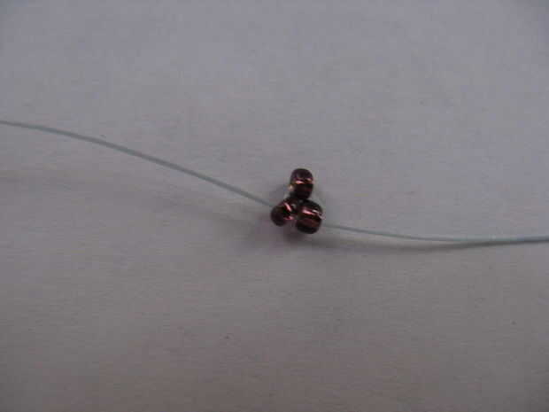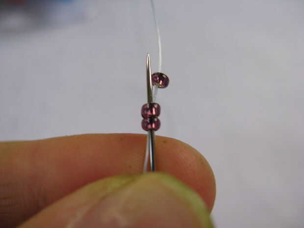 Volver a subir a través de los granos de la parte inferior dos. NO el tercer grano o grano superior. Debe terminar para arriba como un pequeño triángulo que sobresale a un lado. Esto se convierte en su talón de parada, y lo construcción de.