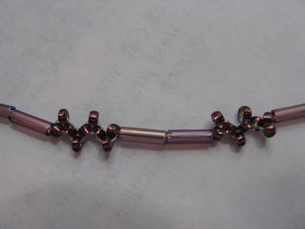 Hacer lo mismo. (Añadir dos granos, tire a través. Añadir dos tiran perlas a través de...) Como usted quiere. En la imagen de la intro, cada cierto tiempo, entre las cuentas rojas, había dos cuentas blancas. ¿Cómo lo hice? Hizo unos triángulos, luego simplemente engarzadas en dos granos, luego paso 2. (Tres granos, no dos)