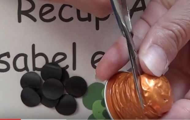 Aplanar un pod de café totalmente y abierto hacia arriba otra vez. Corte de la parte superior e inferior. Aplanar un poco más y cortar nuestros 8 círculos, así como con un círculo punch a pero menor que la utilizada para el tubo interno. Perforar cada pieza en ambos lados.