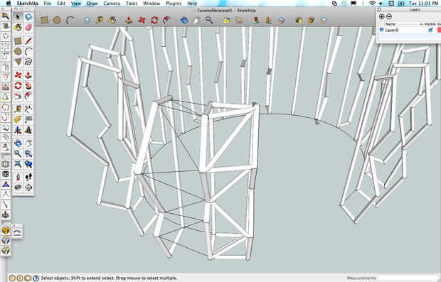 Luego agregué los miembros conexión entre los marcos por los dibujo líneas y luego con uno de los plugins anteriores mencioné para crear los tubos.