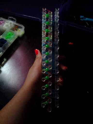de hoy voy a mostrarte cómo hacer una pulsera de cable en el telar del arco iris es una pulsera de nivel intermediaria, pero a veces caen aparte pero no te enojes solo puede rehacerla solo te estoy dando este aviso ahora. cayó aparte en mí dos veces.