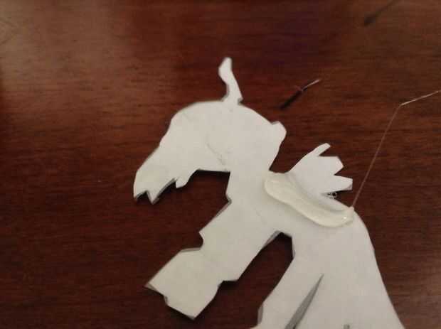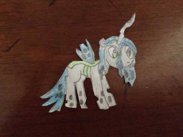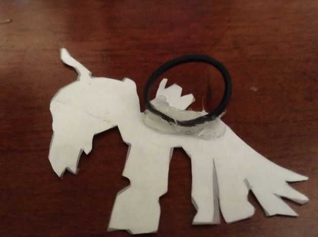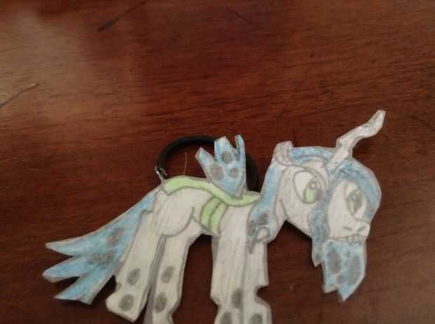 En primer lugar, tomar su papel y dibujar un cuadro pequeño (preferiblemente algo que coincida con el color de tu pulsera, elegí Reina Chrysalis de My Little Pony). Luego, en el cuadro de color y recortarlo. Para hacer su encanto a prueba de agua, cubierta de cinta. A continuación, tomar su pegamento caliente y pegamento una banda en la parte posterior del encanto por lo que se pega en el papel un poco.