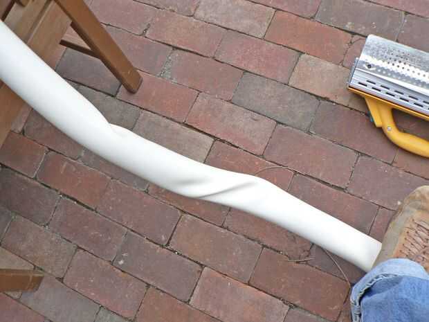 Sostenga la lámpara de calor derecho hasta el punto que desea doblar. Enrosque el tubo de un cuarto de vuelta o cada minuto. La tubería será lo suficientemente suave como para doblar en unos 3 minutos. Ejercer presión en la parte inferior de la tubería con el pie mientras se calienta. Usted sentirá cuando el tubo es bastante suave como empezará a dar. Cuidado de no derretir el tubo! Desea suavizarla lo suficiente para doblar. Alejar la lámpara y empuje el tubo con el pie en el ángulo deseado y manténgalo ahí durante unos 2 minutos dejar la tubería enfríe y endurezca en la posición. Cuánto de una curva o qué tipo de forma que usted quiera será determinada por sus necesidades. Hice dos buenas curvas que había torcido y ponen una curva en la poción central del tubo a todo dar una agradable sensación natural. Como poner más curvas en el tubo, se retuerza y darle un contorno natural.