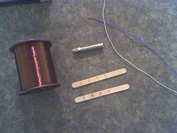 Ponga la paleta se pegan a las cuerdas y marque donde cada cadena de hits. Puede ver las marcas en los palillos en la siguiente imagen. Se trata de una guía por donde tiene que colocar el centro de cada imán. Ahora estás listo para iniciar la construcción