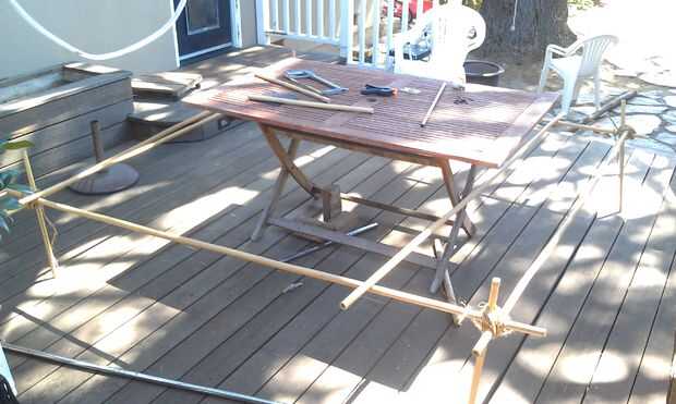 Practiqué mis cintas en una mofa de pequeña escala hasta que se baja a la tierra por lo que no tengo que trabajar encima de la cabeza. Cuando configure el mandap de verdad, ayuda a tener un banquillo para que tus brazos no canso demasiado trabajo encima de la cabeza.