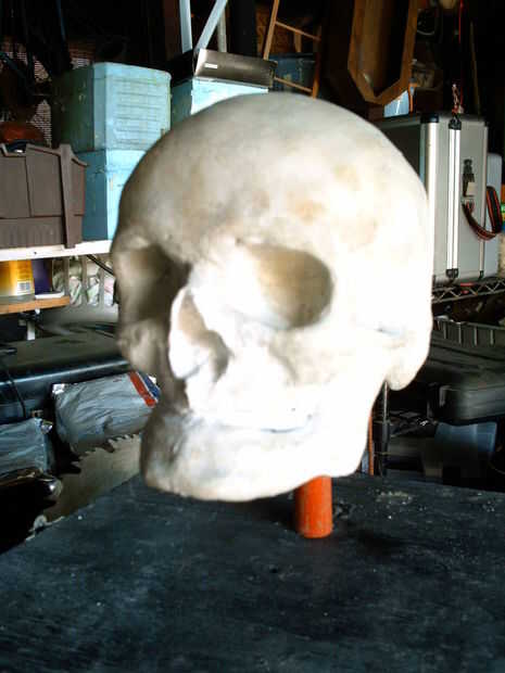 Para este caso el cráneo tuvo que copiarse utilizando alginato de set lento para hacer un molde y fundido en un material de yeso (yeso-como). El reparto no fue tan ideal como en el cráneo real, pero era necesario que el cráneo permanecer en el laboratorio para las pruebas. Para esta reproducción, el elenco funcionaba bien. Debido al difunto no tener ninguna dientes, puedes ver los lleva a la mandíbula en un ángulo mucho más severo que el normal, y la punta de la barbilla se inclina hacia arriba hacia la nariz.