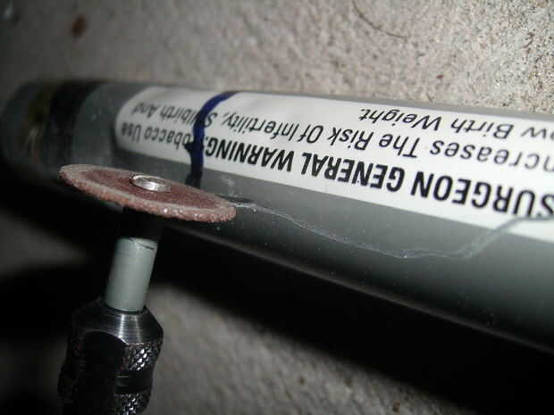 Usuario de la herramienta dremel para cortar los tres lados de un rectángulo de cigarro tubo (ver imágenes) - te total dos cortes.