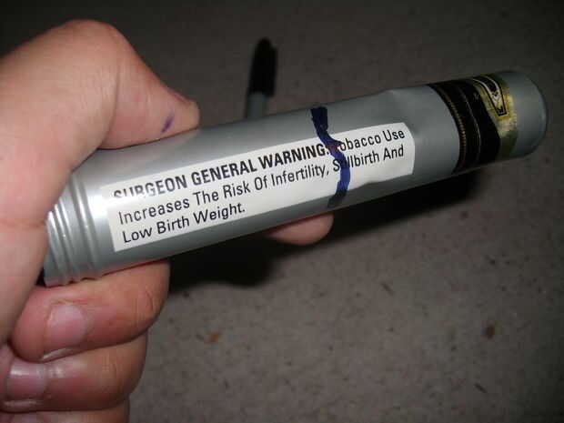Entonces, ponga el extremo abierto del tubo de cigarro, hasta que una 'buena' cantidad en (donde quieras que sea, realmente).