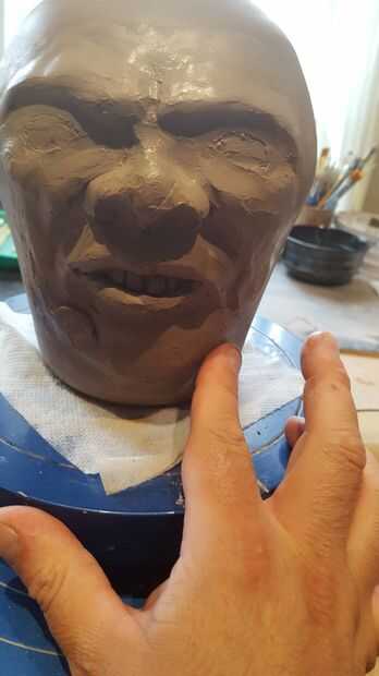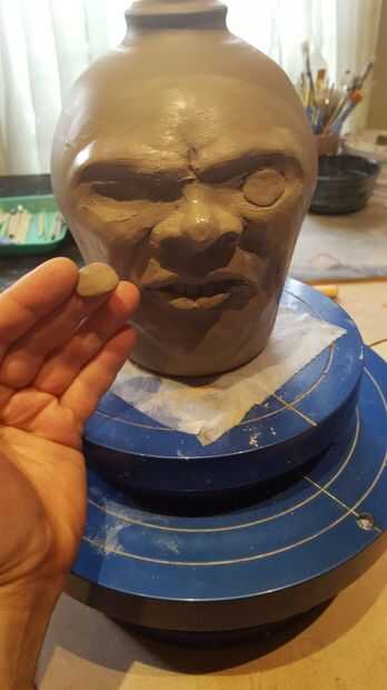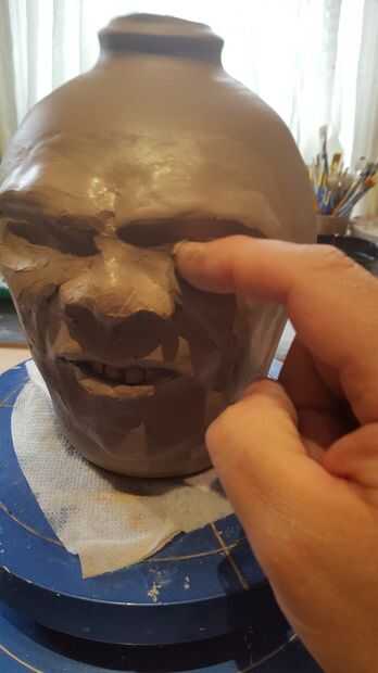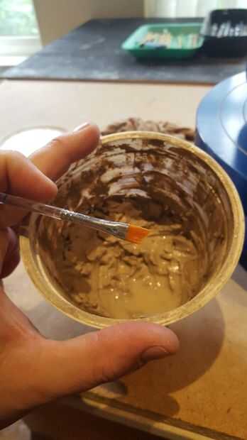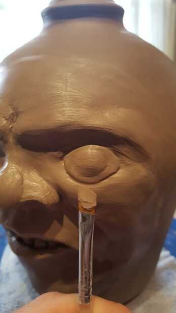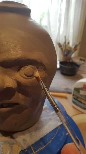 Usted puede comenzar a usar tus pinceles suavizado y comprimiendo los detalles y formar incluso. Puede también suavemente empuje en los zócalos del ojo con los pulgares y comenzar a trabajar en los ojos. Asegúrese de tener algunos resbalones acuosa gruesa. La hoja será una cola así como un agente suavizante. Evitar bolsas de aire captura y mantener spritzing con agua.