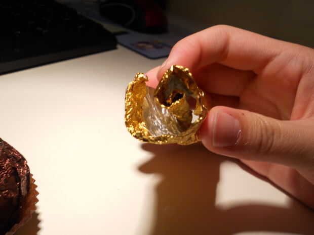 Cómo hacer una rosa de la envoltura del chocolate (3 / 6 paso)