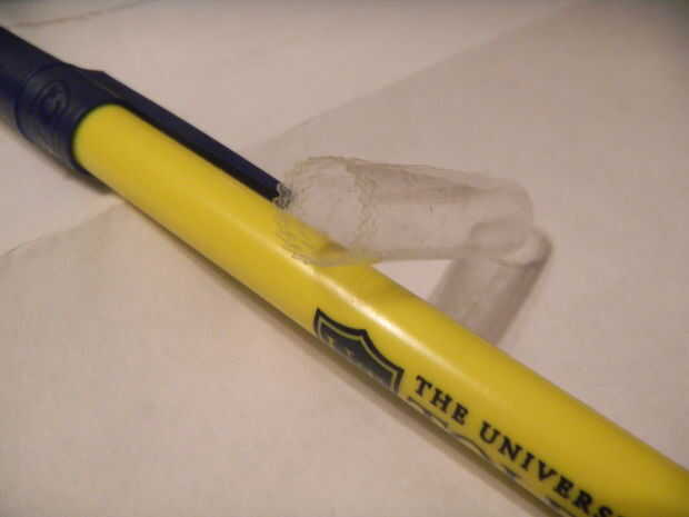 2. Usar una pluma para rodar la cinta en un tubo, manteniendo el lado adhesivo hacia fuera.