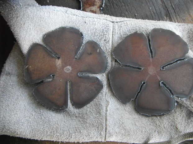 Ahora que ya tenemos los pétalos cortados en su tiempo para limpiar los bordes del disco y para terminar formando los pétalos. Para esto necesita su amoladora de ángulo con el disco de amolado y corte. Asegúrese de que los cortes son rectos y completamente aunque los pétalos. Ejecute la amoladora sobre la superficie del pétalo disco varias veces hasta que quede liso o brillante. Una vez que el disco es liso, redondear las esquinas afiladas de los pétalos. Esto hace más seguro y le dan un aspecto más realista de pétalo. No se apresure usted mismo en este paso. Dependiendo de cómo suavizar los pétalos y alrededor de las esquinas determinará la apariencia del producto final.