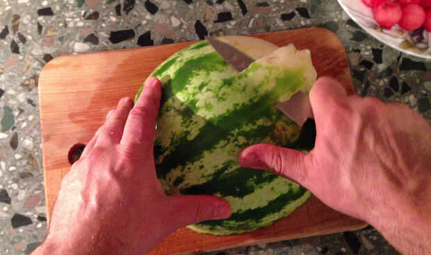 Paso 2: Retire la parte verde de la corteza de la sandía