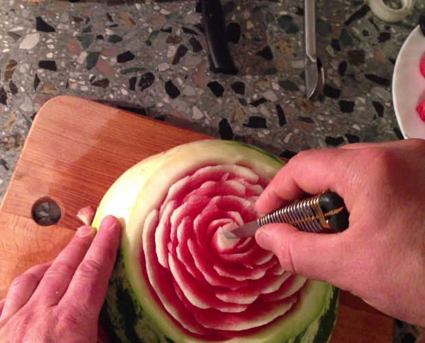 Cómo hacer una rosa de sandía (5 / 8 paso)
