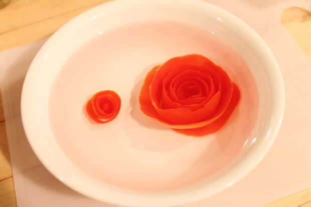 Almacenar: rosas de tomate pueden ser cubiertos y refrigerados por varias horas o durante la noche. Sin embargo, si usted está haciendo su guarnición de tomate se levantó antes de tiempo, mantenerlo fresco por remojo en agua muy fría. El agua fría ayudará a mantener la frescura y mejorar el aspecto cuando se utiliza más adelante.