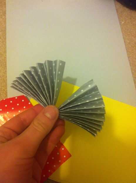 Una vez que haya terminado de doblar la tira entera de papel doblar por la mitad así que tiene forma de abanico.