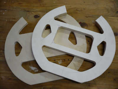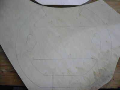 2 ° cortar la forma entera de la rueda de manejo. Lugar la plantilla sobre la madera contrachapada de corte hasta 10 mm y copiar el perfil excepto el teléfono de su casa. Ahora corte la rueda también de 10 mm.