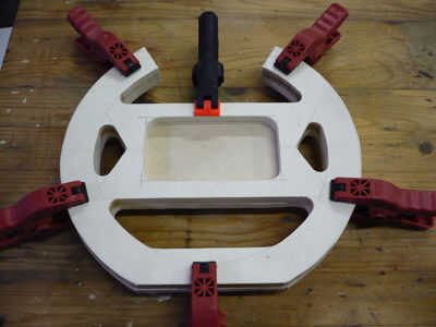 3 ° arena bueno para la cubierta del teléfono con papel de lija. En este punto debe pegar los dos volantes con cola blanca (pegamento PVA). Con pinzas de bloque de ellos o si no han plantado dos clavijas y luego nos puso en un buen peso. (Clavos se utilizan para mover no tiene las dos formas).