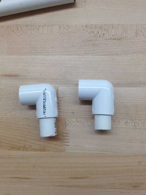 Tomar un codo de 90 grados y coloque un conector de tubo. Duplicar esto.