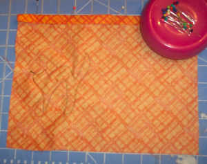 Pin el borde superior de la bolsa de 1/2" hacia el lado equivocado. Puntada.